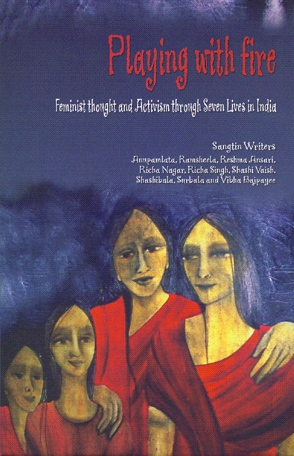 In 2001-2002, I became interested in looking at how women’s NGOs in Lucknow and Hyderabad were connecting the politics of secularism and communalism with questions of gender-based violence. But for reasons that had to do with rifts that had happened between activists and academic researchers in the past, this project ‘failed’ and I could never officially begin my research in Hyderabad even though some amazing people in that city shared many critical insights with me. In March 2002, I was coming out of that setback, reflecting on what I had learned, and was about to head back to the US with my 4 year old daughter. And that’s when Richa Singh from Mahila Samakhya-Sitapur (the organization for which we use the pseudonym, NSY in Playing with Fire) came by my parents’ home one day just to say hello to us. I had known Richa Singh because I had been spending time with members in Mahila Samakhya-Uttar Pradesh since 1996, and I had done some intensive work with Mahila Samakhya and Vanangana in Bundelkhand region of India in 1998-9. So Richa Singh came and said, ‘Why don’t you come to Sitapur? You haven’t visited since 1996.’ In 1996, when Mahila Samakhya (MS) was beginning to imagine itself in Sitapur, I had dragged my mother there, we spent a few days doing things, meeting women, and so on. But I hadn’t been back. Partly, I’d not been back, because when I talked with MS officials nobody ever said anything about Sitapur. So, Richa Singh came and started talking about how she was truly frustrated by the politics of documentation, and that people really don’t find out about the solid work that happens on the ground unless someone produces a glossy report about it, too. All of the very important work that they had been doing on the ground just went unregistered, unnoticed, because they were not into report preparation. From there, we got into conversations about NGOization, about professionalism, about elitism, about caste and class inequalities, and so on. And then, she said, that before I left for the US I should come visit. And I did. My daughter came along, and the seeds of a long partnership were sowed that March.